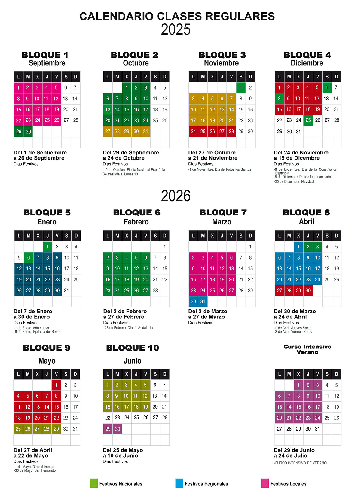 Clases regulares desde el 1 de Septiembre 2025 hasta el 19 de Junio 2026.